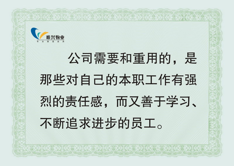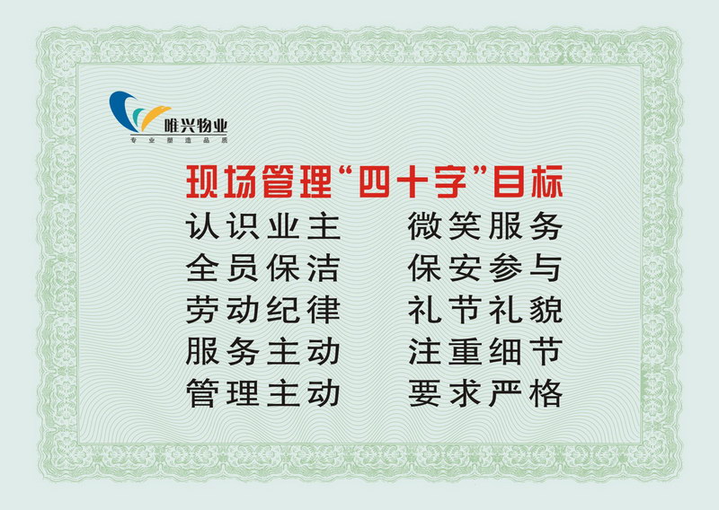 用心服务,专业管理,务实经营。先进的服务与管理理念,指引唯兴物业公司沿着正确的方向稳步发展。