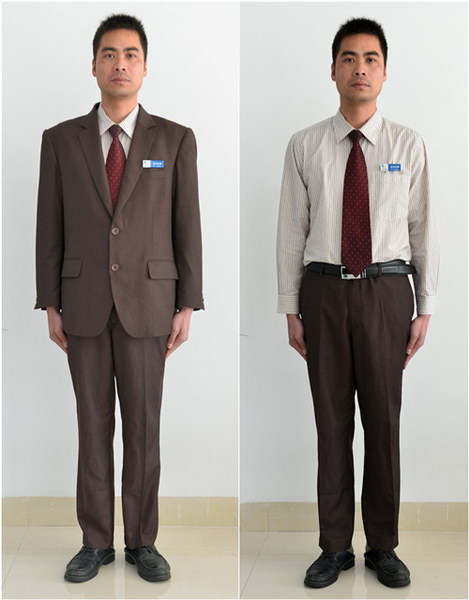 员工个人形象不只是个人性的,它承担着对整个公司的印象。员工的气质就代表了公司的气质,员工的行为代表着公司的行为,员工的着装也代表了公司的精神面貌。服装不仅能装饰人的外表,而且能使人自信。公司特邀广州亚运会礼仪服装设计师蔡敏担任服装设计顾问。